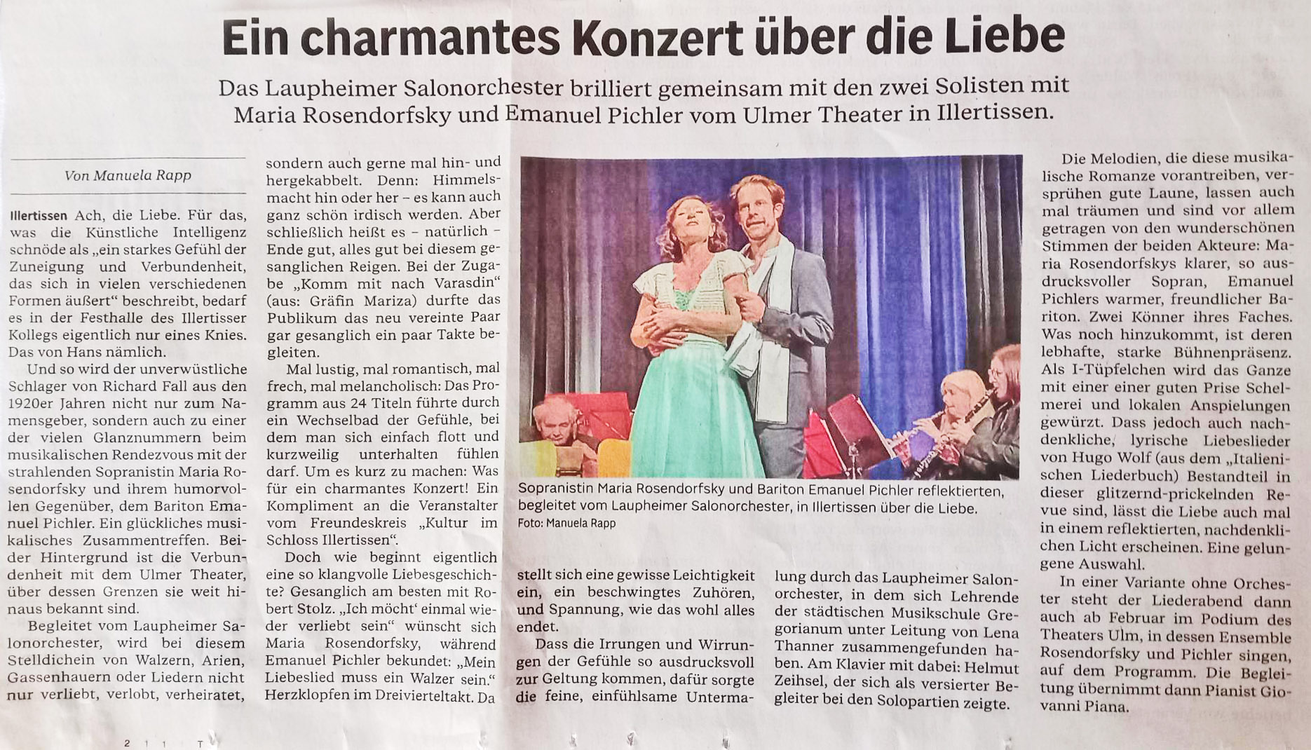 Das Laupheimer Salonorchester brilliert gemeinsam mit Maria Rosendorfsky und Emanuel Pichler